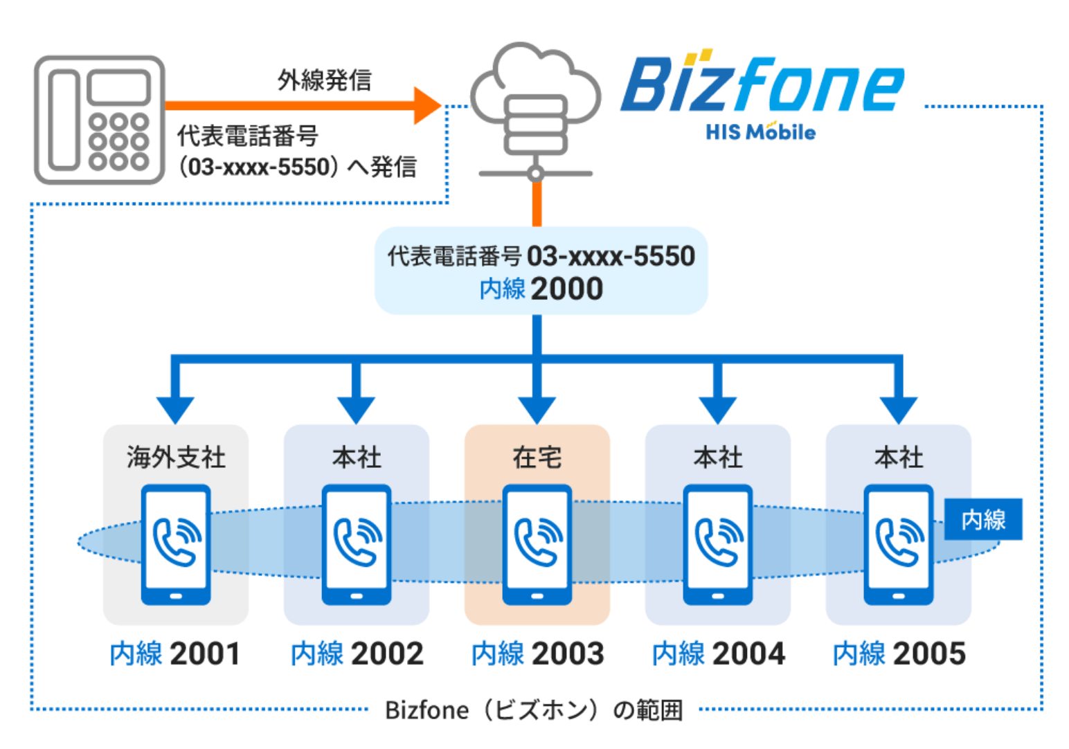 | Bizfone(ビズホン) 同士の 外線通話 |