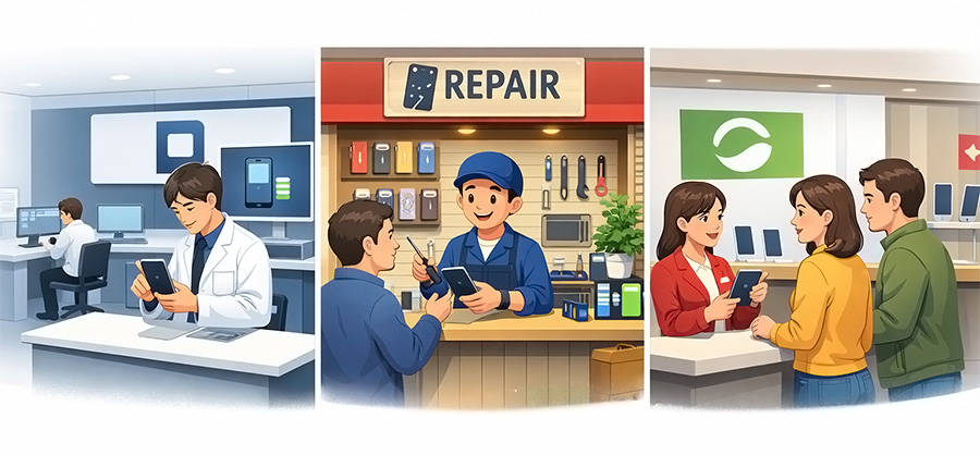 Androidスマホの場合は、メーカー直接よりも、大手キャリアショップ(ドコモ・au・Softbank・楽天モバイル)の窓口を通じて、正規のバッテリー交換を受けることができます。